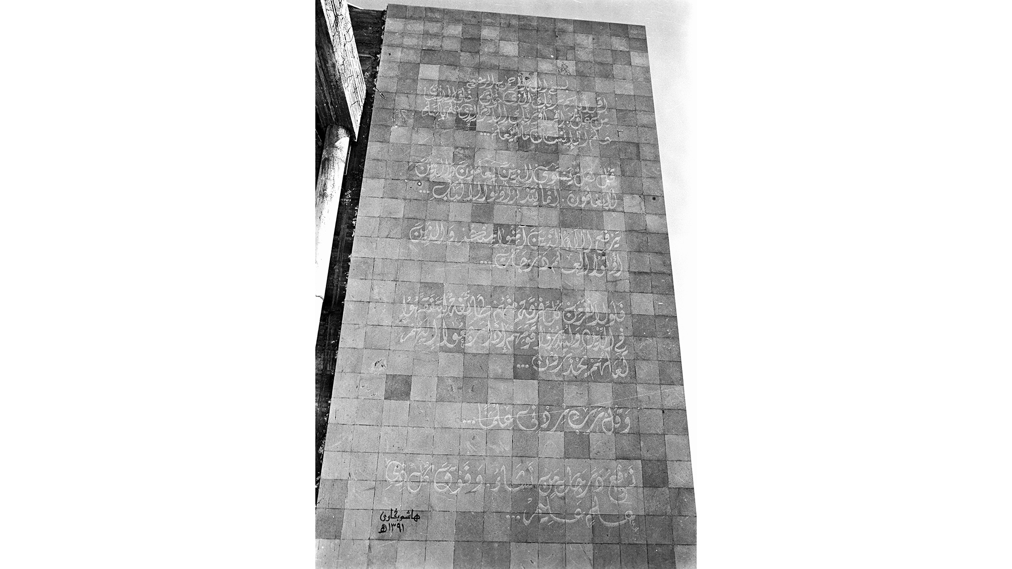 آيات بيّنات من القرآن الكريم نُقشت على الواجهة الأمامية لمبنى قاعة المحاضرات الكبرى.