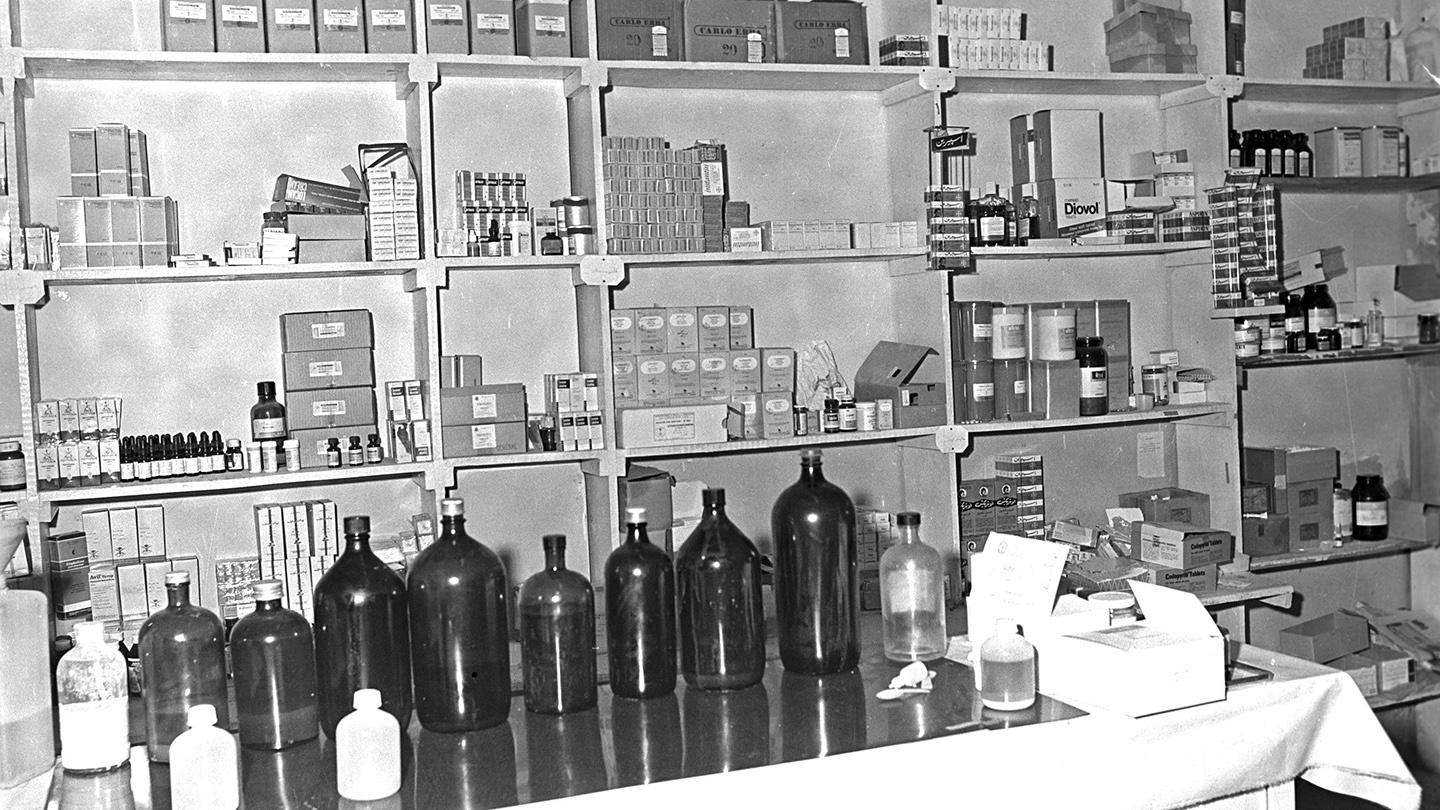 رفوف صيدلية الجامعة تزخر بأحدث العقاقير والأدوية التي تُصرف بالمجان للطلاب وأعضاء هيئة التدريس والموظفين في الجامعة وعائلاتهم.