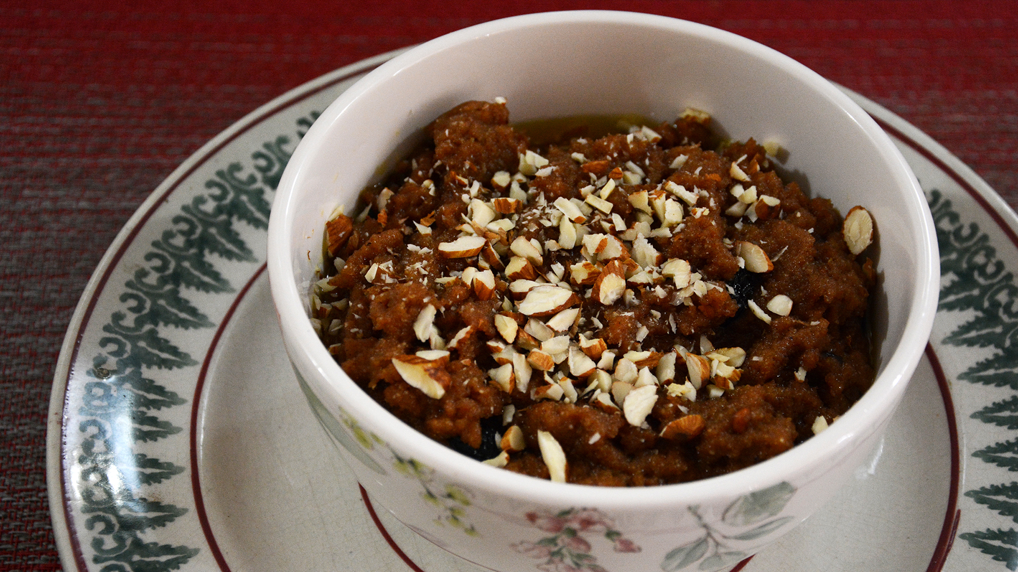 ينتقل حسين الآن إلى طاولة في الزاوية لتحضير مكونات الحلوى (halva)، وهو طبق حلوى محبوب في جنوب آسيا تعود جذوره إلى الكلمة العربية (الحلوى)، التي تشير إلى الطعم الحلو. ويشرح أن هذه النسخة من الطبق هي حلوى متعددة الحبوب، تجمع بين دقيق الأرز ودقيق الحمص المحمَّص ودقيق القمح الكامل لإضفاء قوام غني ومتعدد الطبقات.