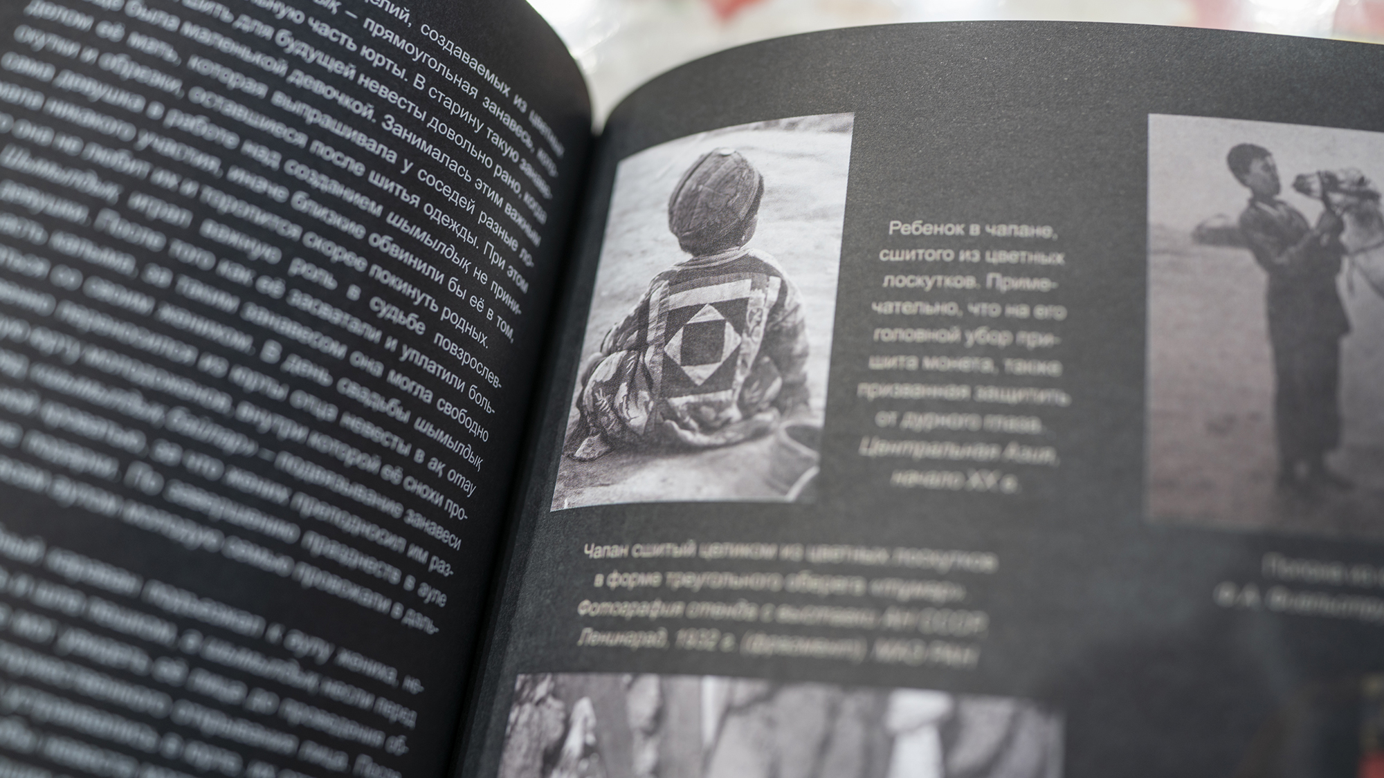 تُخرج غولميرا أوليخان قطعة تلو الأخرى من الكوراك -وهي قِطَع من لُحف كانت موجودة في كل منزل تقريبًا في البلاد- مما يستدعي الإشادة بالنساء اللواتي صنعنها من أقمشة نادرة انتقلت على امتداد مسارات القوافل القديمة على طريق الحرير، وكانت هذه القطع زينةً للمنزل وجزءًا من مهر المرأة، وعلاوة على ذلك فإنها تحمل قيمة رمزية؛ إذ كانت تُتّخذ وسيلةً للحماية.