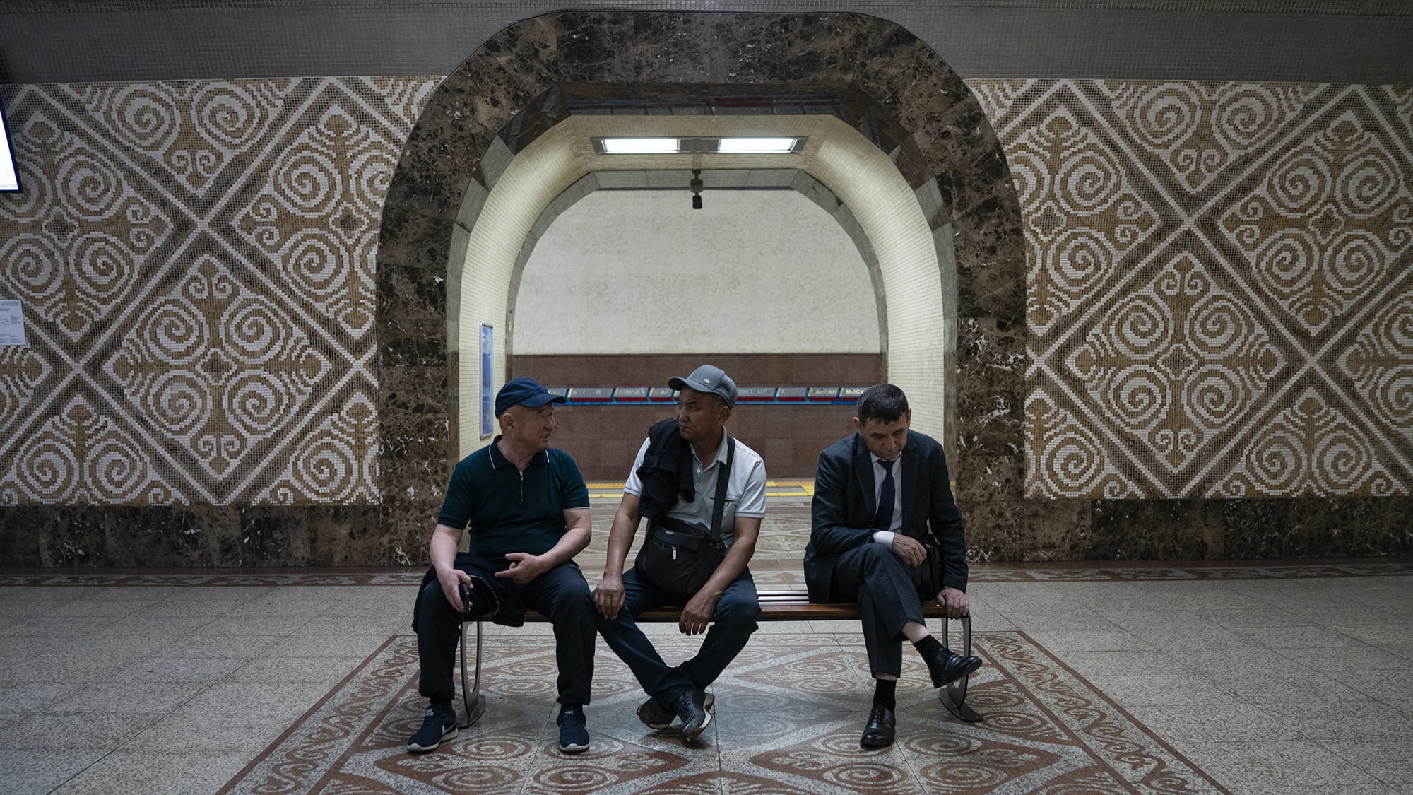 أنماط الكوراك منسوجة في الحياة اليومية في ألماتي، على جدران محطات المترو وأرضياتها.