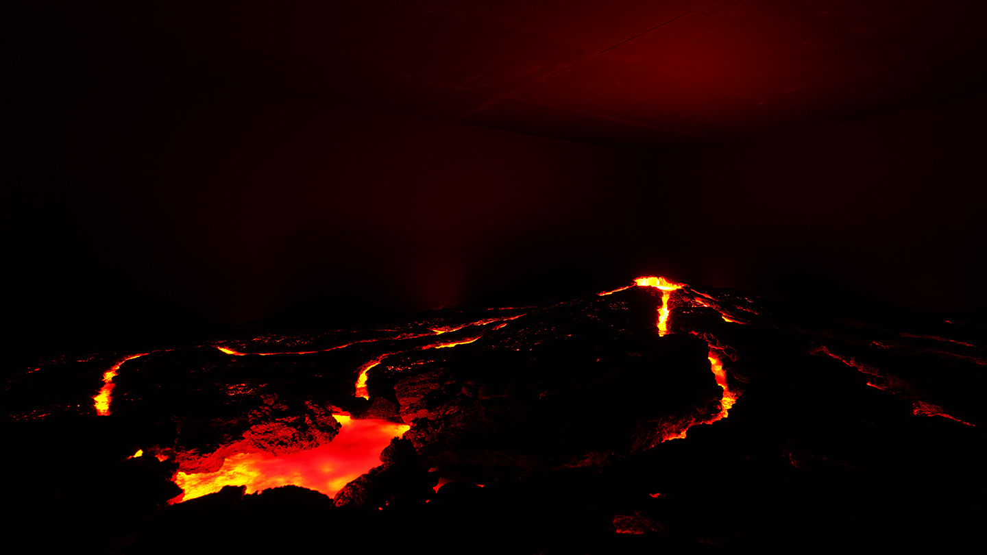 عمل فنّي بعنوان «ثِنان»، عبارة عن قِشرة من التكوينات الحجرية أُعيد تشكيلها لتماثل صفائح من الصخر البازلتي المتشقِّقة عن حممٍ بركانيةٍ نشطة.