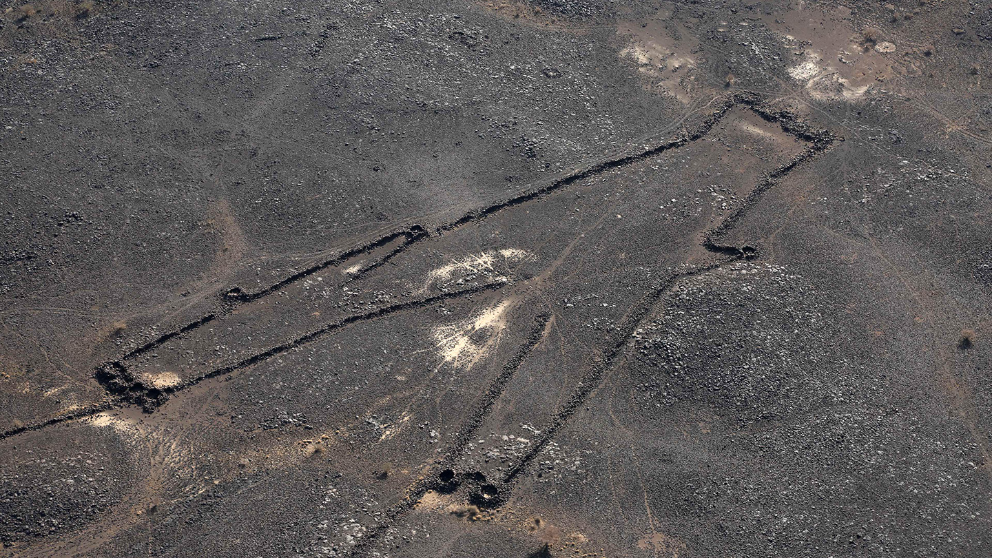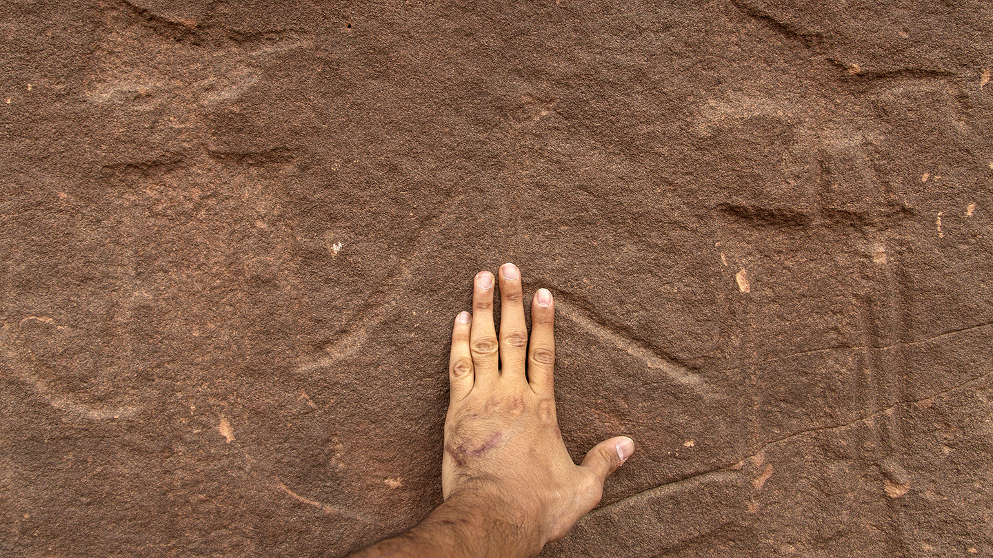 صورة توثيقية لرموز إحدى الحضارات العتيقة المحفورة على جدران أحد الصخور.